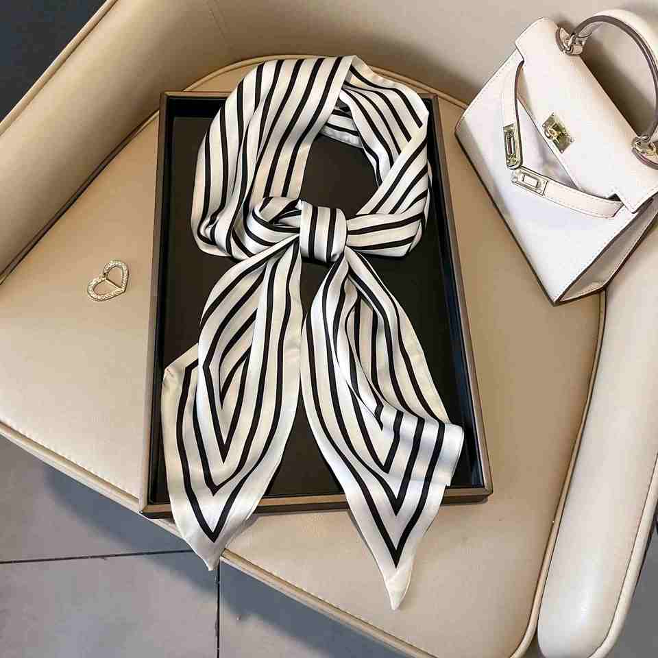 Large Angle Ribbon Emulation Silk Women's New Lace-Up Retro and All-Matching Printed Professional Scarf