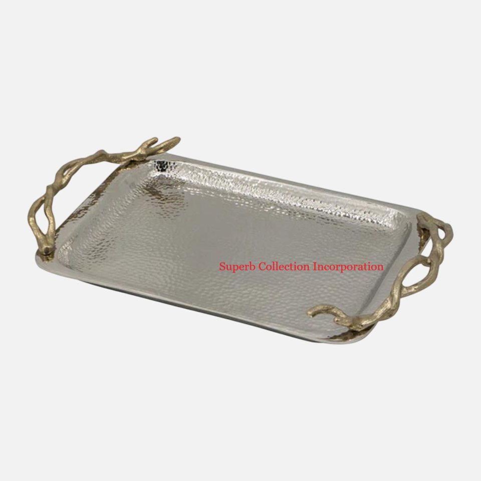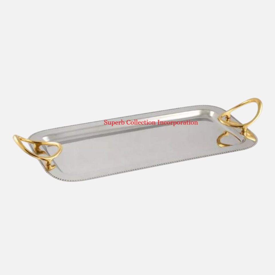 Large Antique Gold Metal Serving Tray with Round Handle for Serving Snacks Desserts Sweets Cookies or Drinks