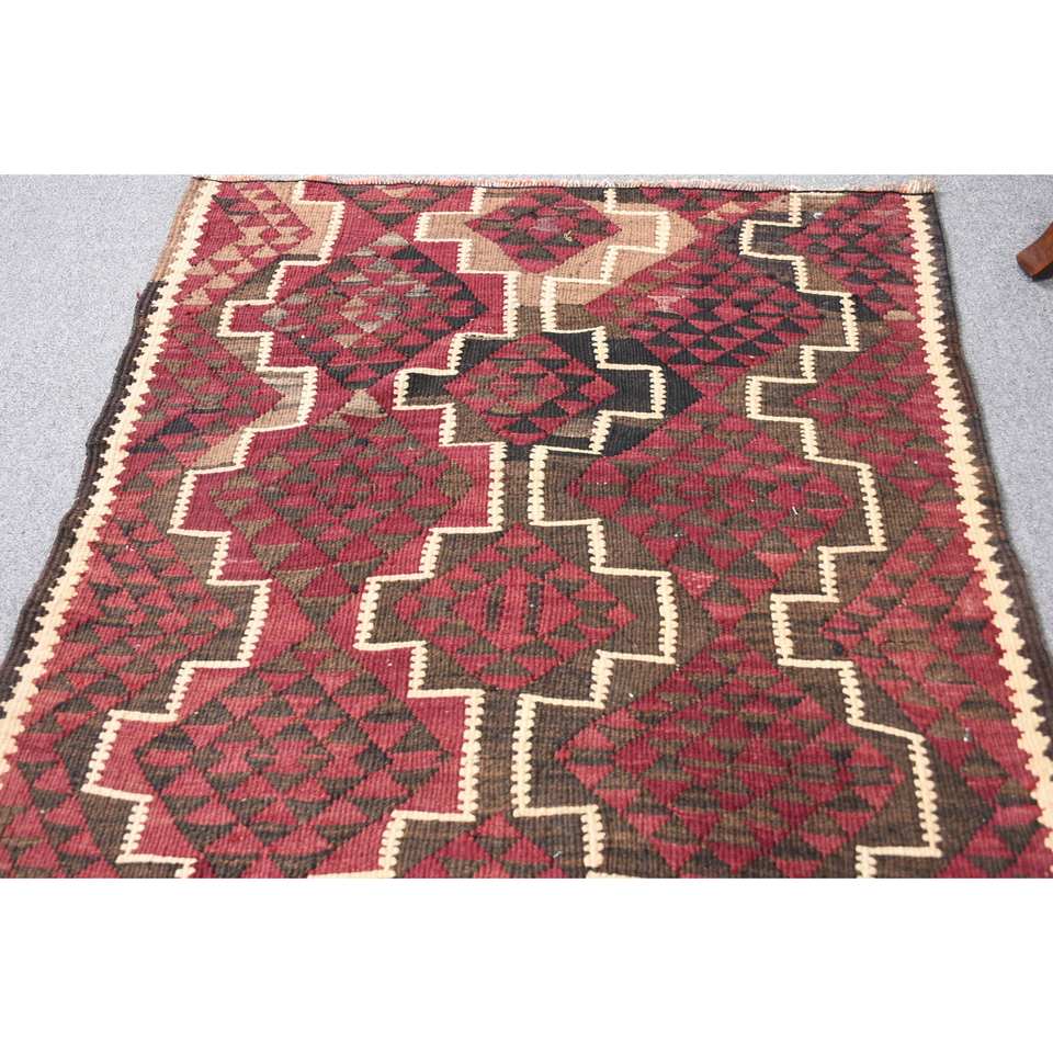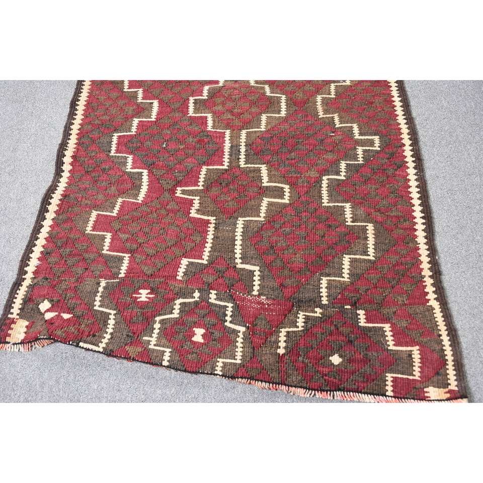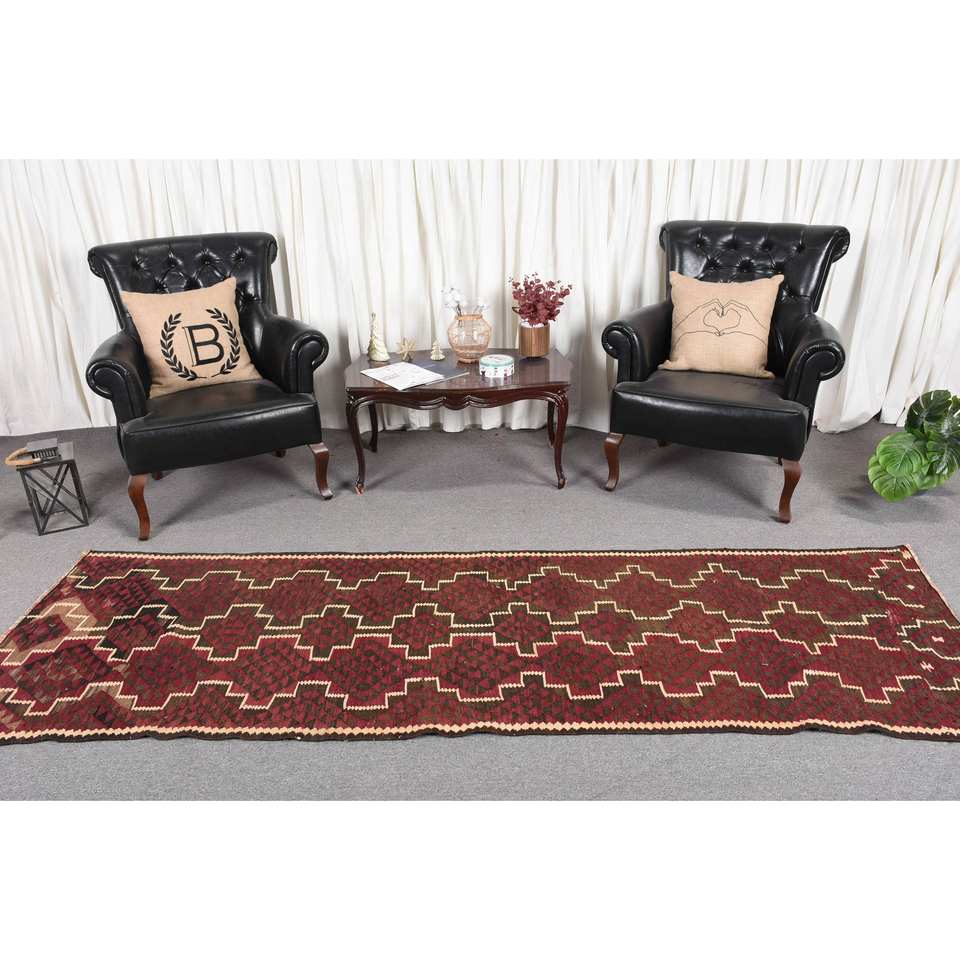 Large Area Kilim Red Brown Wool Rug 3.1 X 7.8 ft Turkish Flat Weave with Latex Backing for Hallway or Room Rectangle Pattern