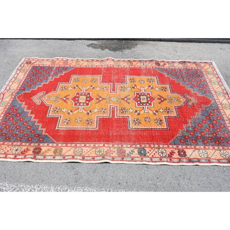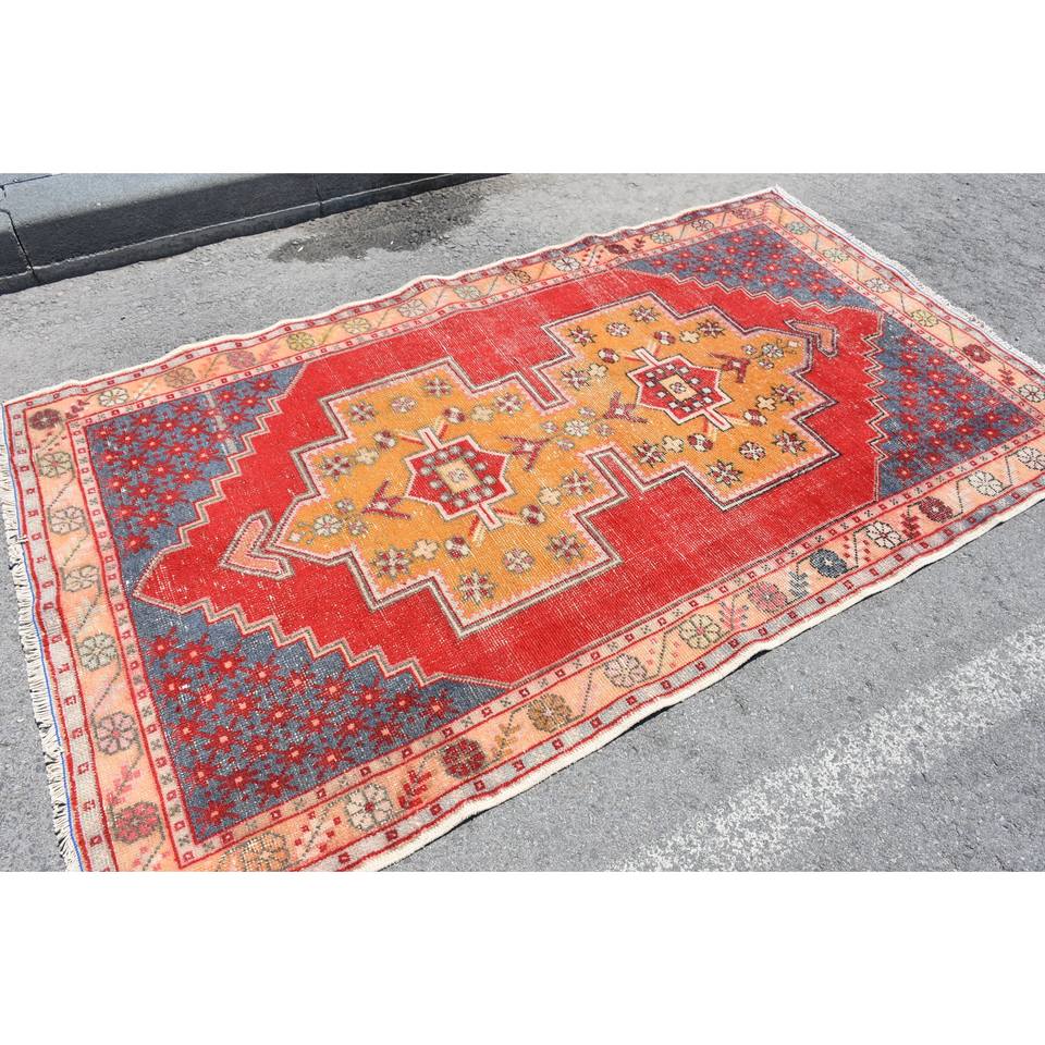 Large Area Turkish Rug Classic Red Yellow Patchwork Design 4.4x7.7ft Wool Material 10mm Latex Kilim for Hallway Room Decor