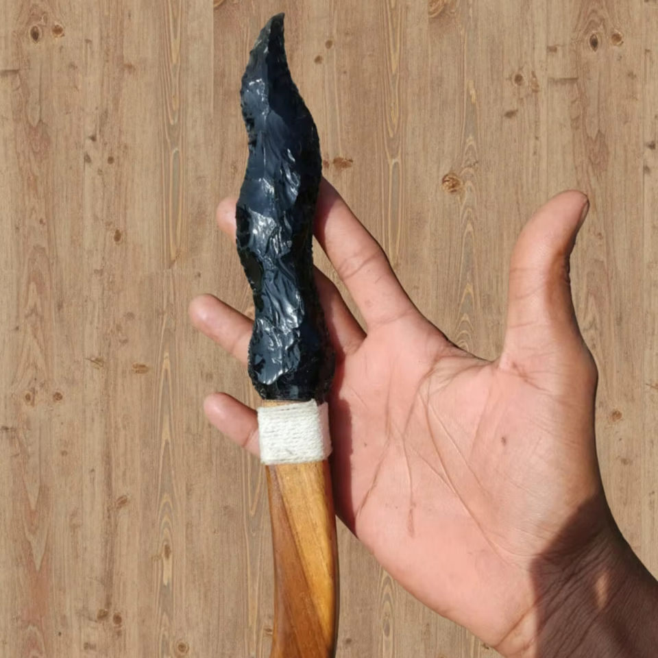 Large Arrowhead Handcrafted Carved Gemstone Black Obsidian Knife Flintknapped Natural Volcanic Glass Collectible Decor Craft