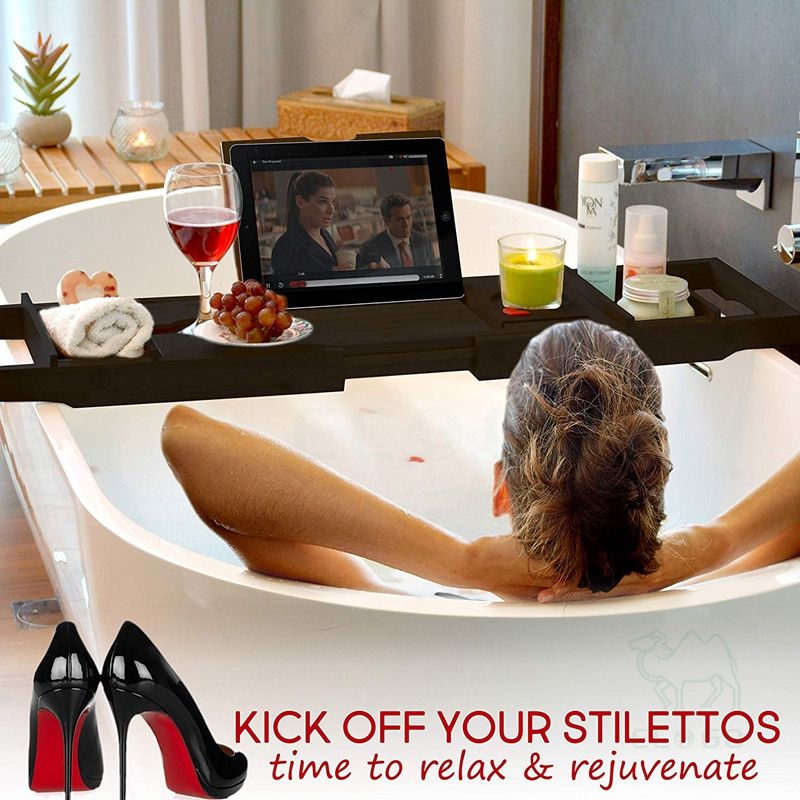Large Bamboo Bathtub Caddy to Bed Tray , Bath Caddy Tray & Laptop Bed Desk