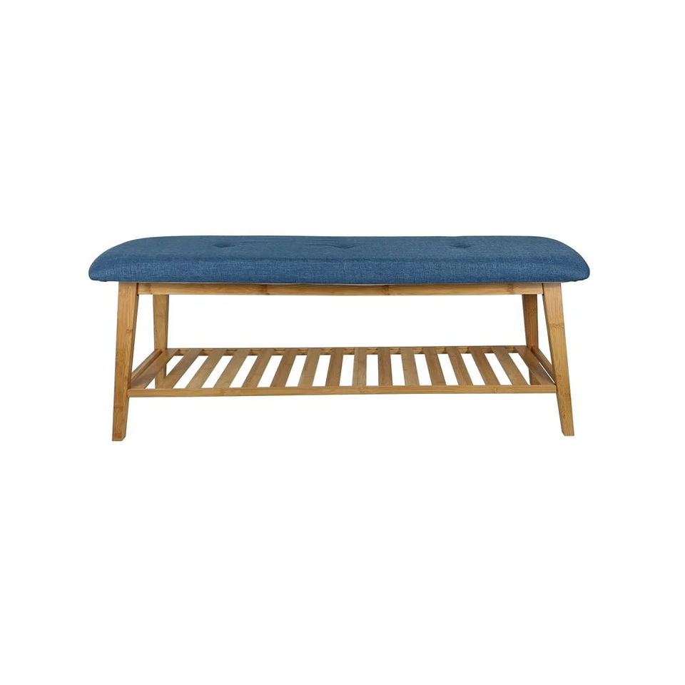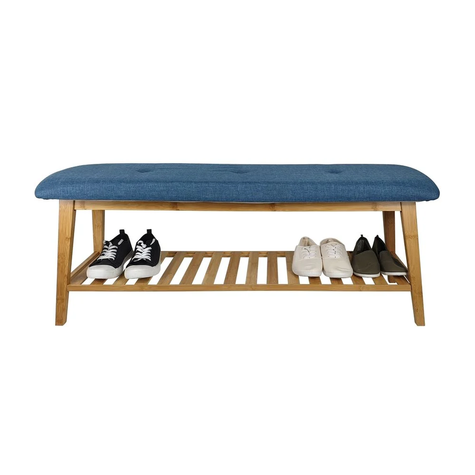 Large Bamboo Shoe Bench Blue:W47,2 x D13,4 x H17,7 inch