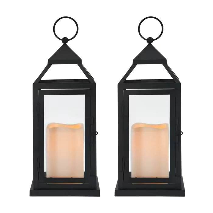 Black Coated Decorative Metal Tall Lantern for Garden Living Room Decorative Floor Candle Hanging Lantern Sets