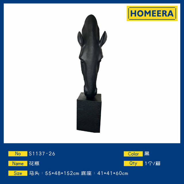 Large Black Fiberglass Horse Head Design Vase 55x48x152cm for Home Decor