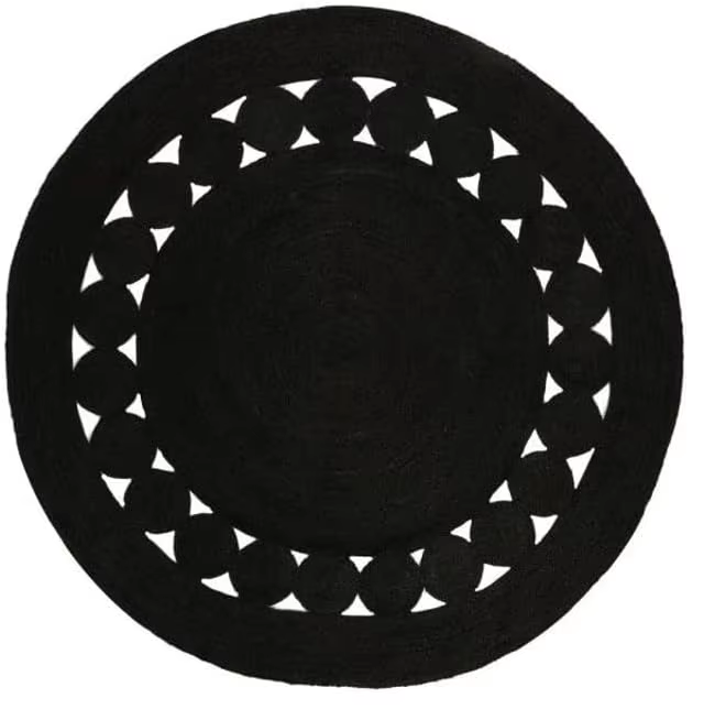 Large Modern Black Handmade Jute Rug (4x4) Washable Farmhouse Charm for High Traffic Areas for Living Room Outdoor Kids' Space