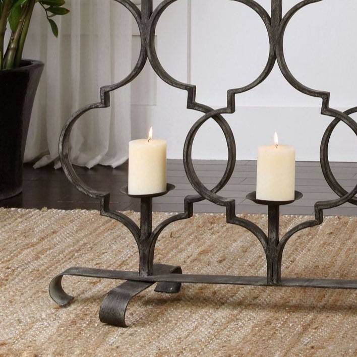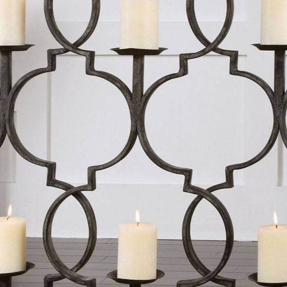 Large Black Metal 6 Light Floor Candelabra Moroccan Screen Pillar Candle Holder Luxury Fireplace Wedding Table Centerpiece Decor
