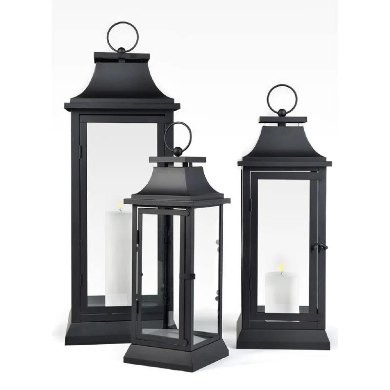 Large Black Metal Glass Floor Lantern Ring Handle Traditional Tall Tea Light Holder Handmade Eco-Friendly Christmas Indoor