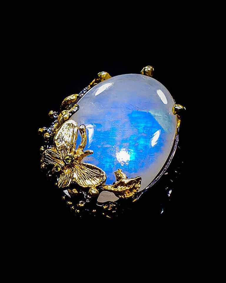 Large Blue Moonstone Ring for Women Oval Gemstone Black Silver Jewelry Gift for Mom Anniversary Birthday 925 Sterling Silver
