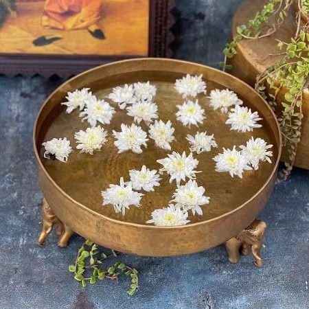 Large Bowl Handmade Round Shape Brass Rustic Gold Color Urli Prime Size Urli for Diwali and Any Occasion Use