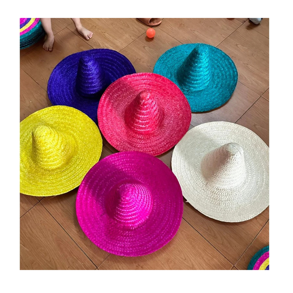Large Bright Color Mexican Sombrero Hat Straw Hat for Summer Travel Party Beach Festival Holiday and Decoration
