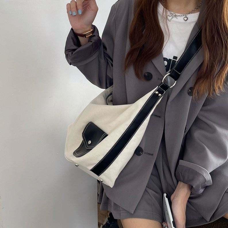 Large Canvas Grocery Women's Tote Bags Adjustable Wide Strap Customize logo PU Women's Shoulder Bags