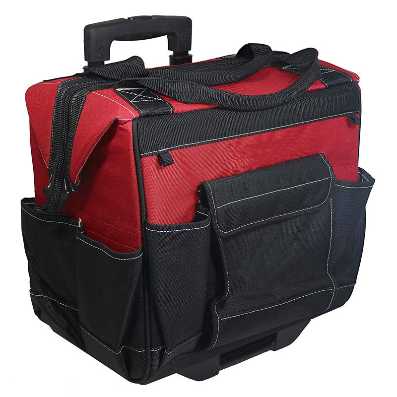 Large Capacity 18 In. Wheeled Tool Bag Trolley,Waterproof 600 Denier Rolling Tool Bag With Telescoping Handle