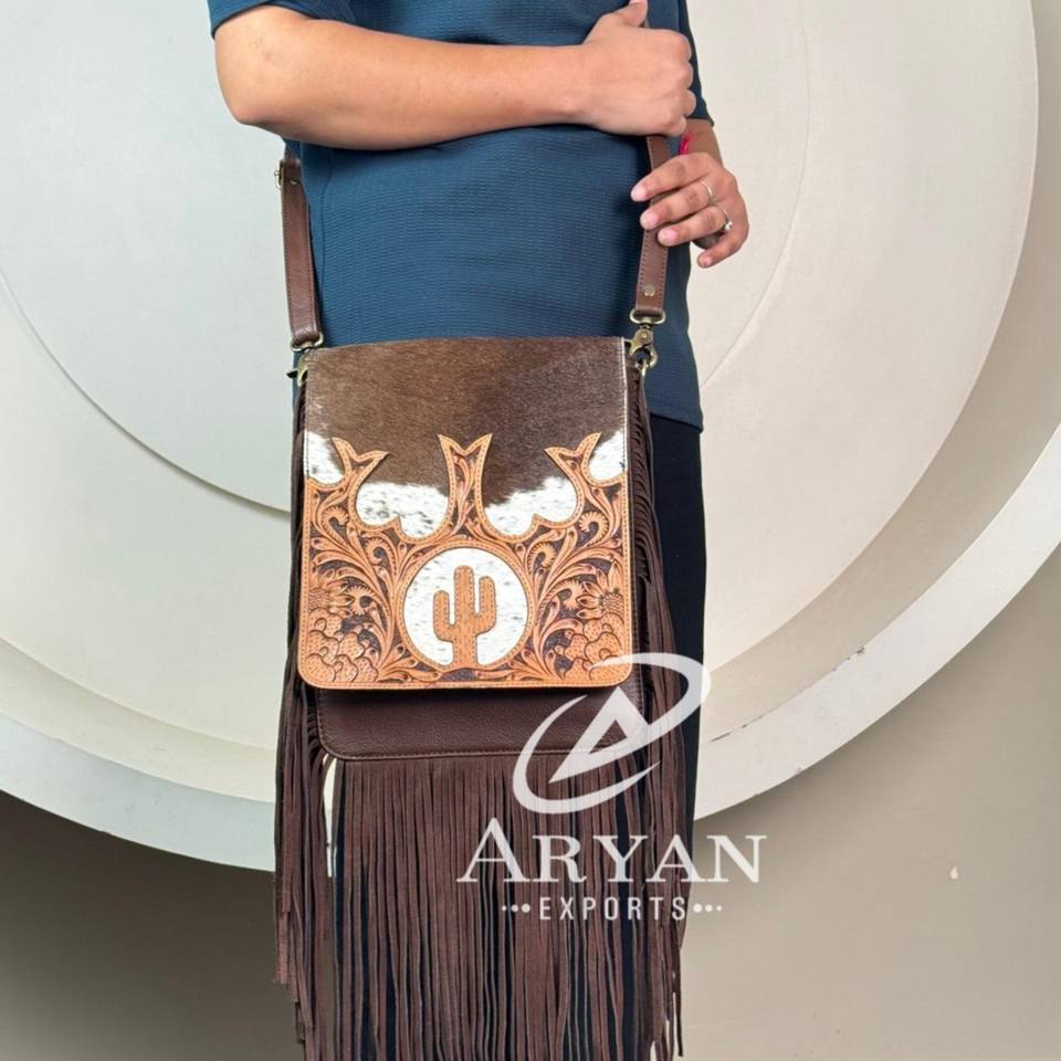 Product name:Hand Tooled Leather Fringe Crossbody Bag