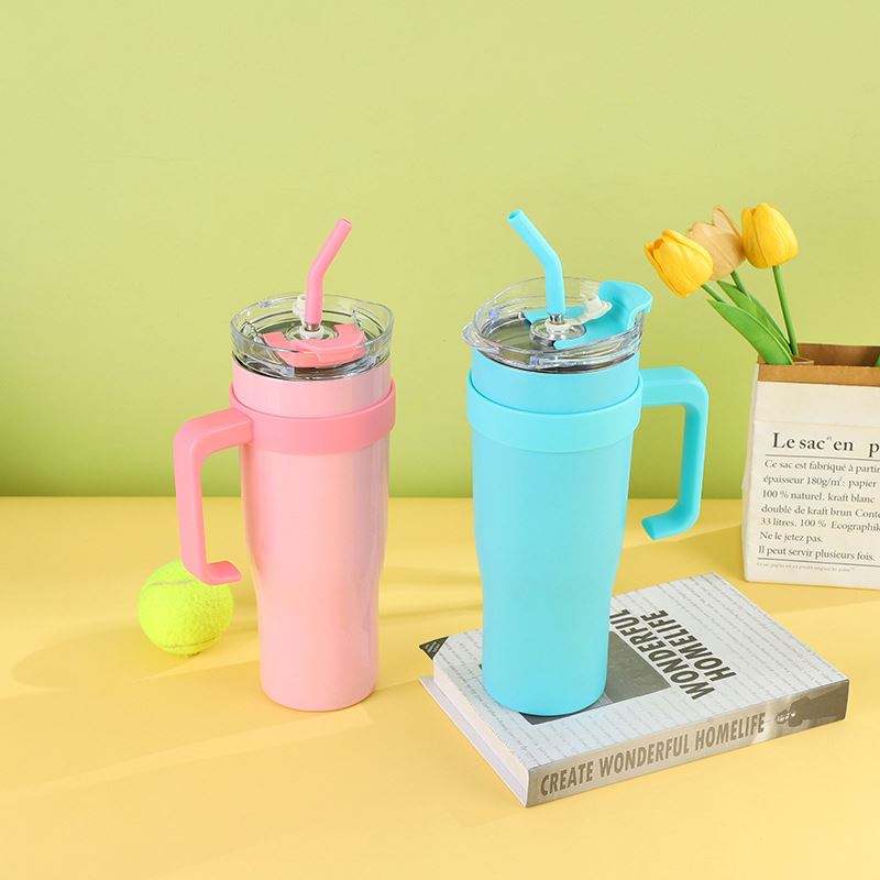 Large Capacity 40 oz Insulated Stainless Steel Car Cup Tumbler 304 Drinkware Straw Handle Gym Outdoor Activities