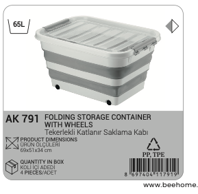 Description:Collapsible Storage Container with Wheels Foldable