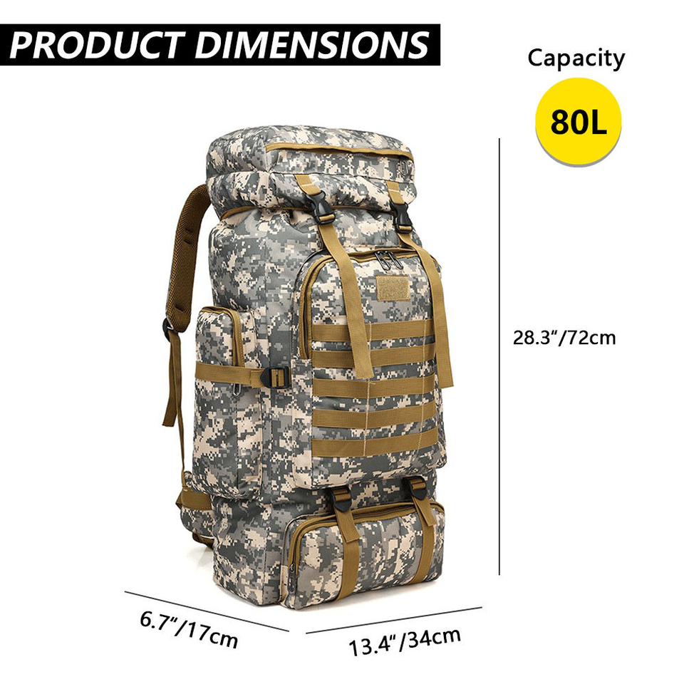 Large Capacity 80L Outdoor Sports Tactical Backpack Waterproof Camouflage Design for Hiking Casual Travel Climbing Bags