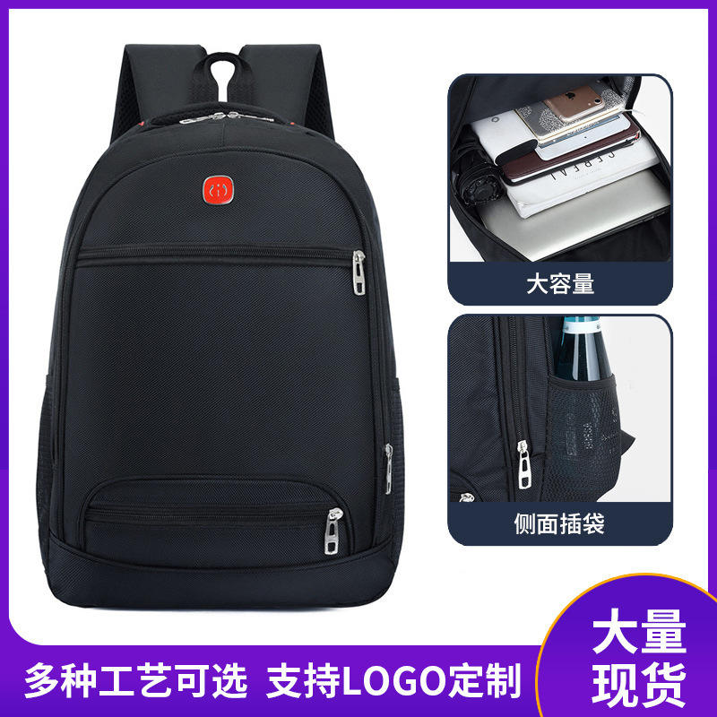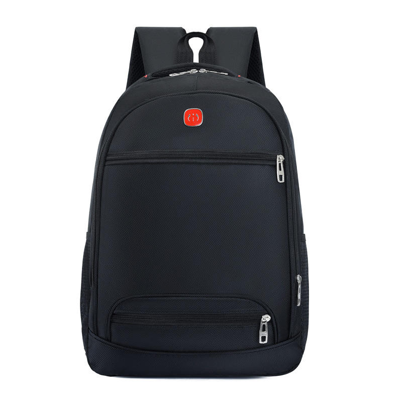 Large Capacity Backpack Black Solid Color Laptop Compartment Unisex Shoulder Straps For Travel Business School