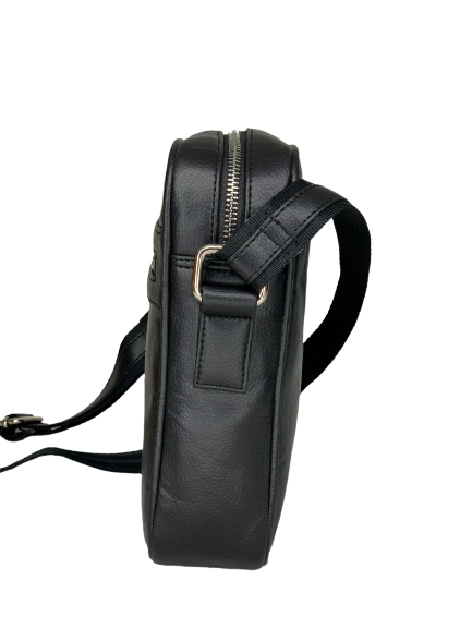 Large Capacity Black Leather Crossbody Sling Bag with Zip Closure