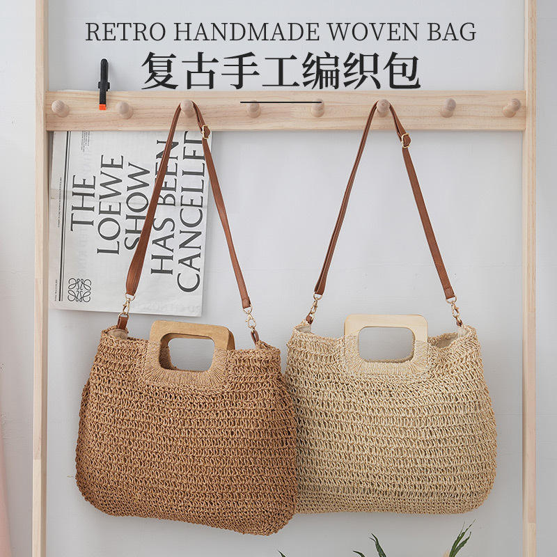 Large Capacity Casual Tote Beach Bag Handmade Vintage Woven Straw Hollow Beach Vacation Crochet Bag Handmade