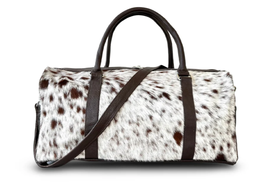 Large Capacity Classic Cowhide Duffle Bag Luxury Wheels Zipper Closure Exclusive Weekender for Travel Sports Gym Overnight Use