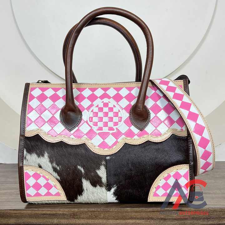 Product name:Hand Tooled Checkered Leather Crossbody Tote Bag