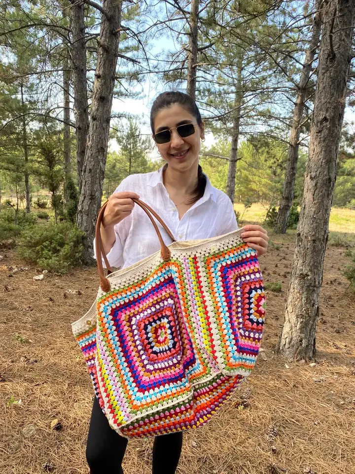 Large Capacity Crochet Shoulder Bag Multicolor Knit Handbag | For More Details, Contact Us