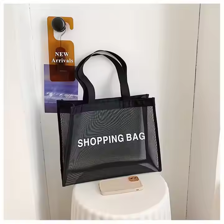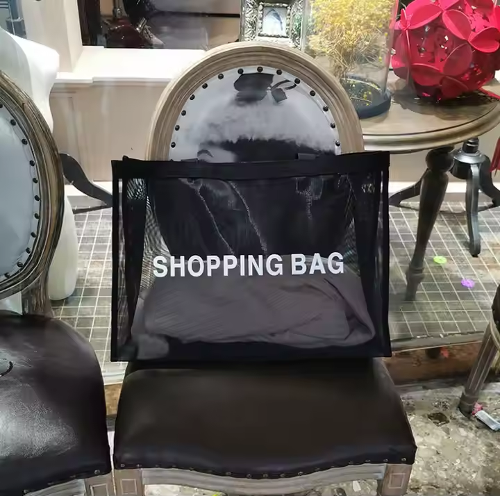 Large Capacity Custom Logo Fashion Black Net Fruit Vegetable Carrying Grocery Tote Shoulder Nylon Mesh Shopping Bag