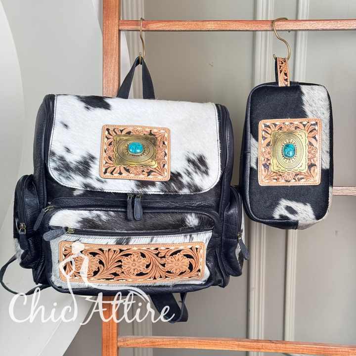 Product name:Hand Tooled Leather Backpack & Toiletry Bag