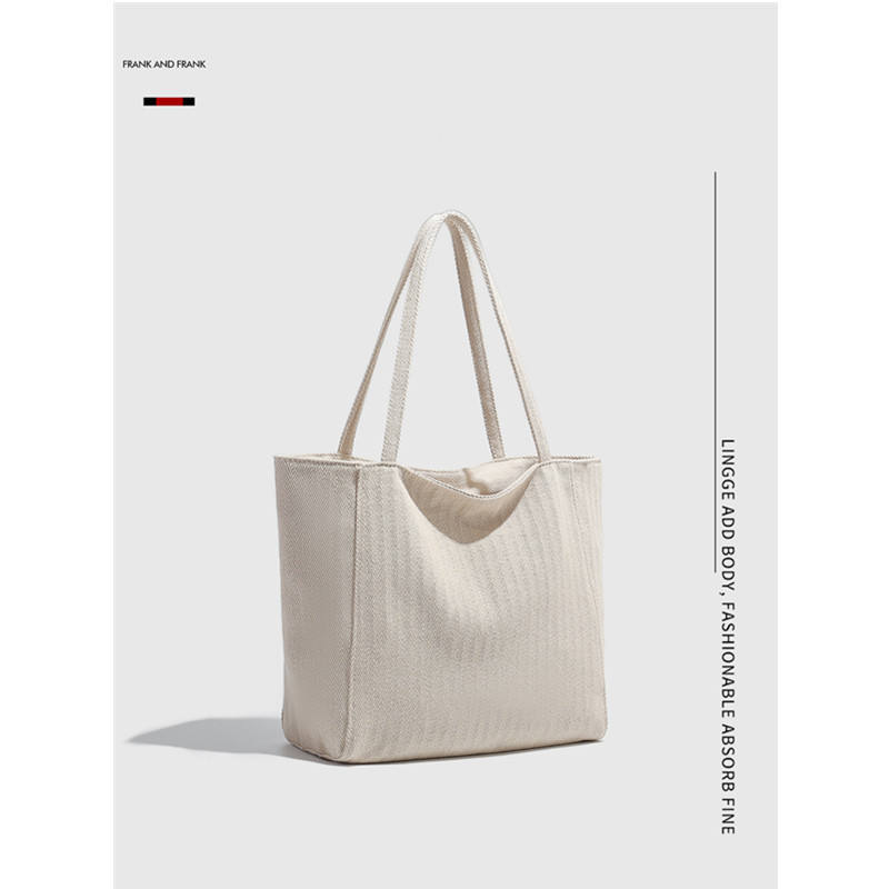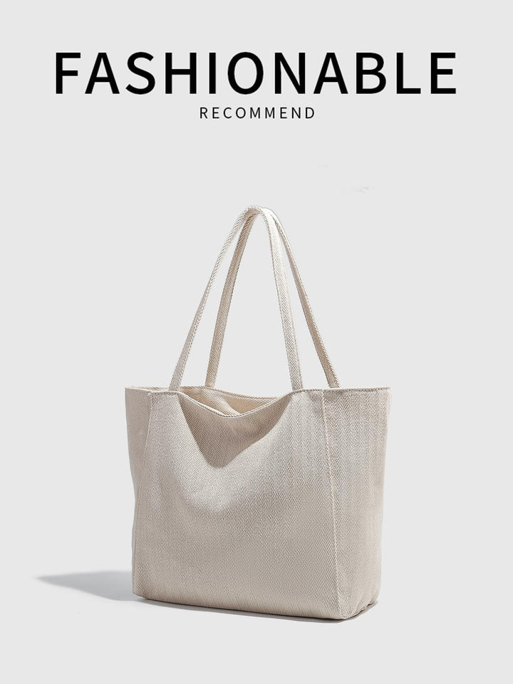 Large-Capacity Fashionable Twill Canvas Women's Commuting Shoulder Tote Bag Zipper Closure Two-Handle 30x15x40cm Shopping