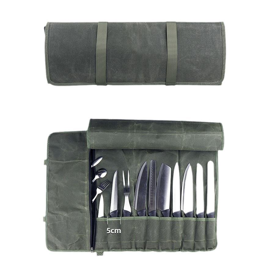 Large-Capacity Foldable Portable Oil Wax Canvas Chef Bag Zipper Anti-Scratch Kitchen Utensil Cosmetics Tool Bag for Knife
