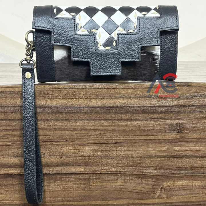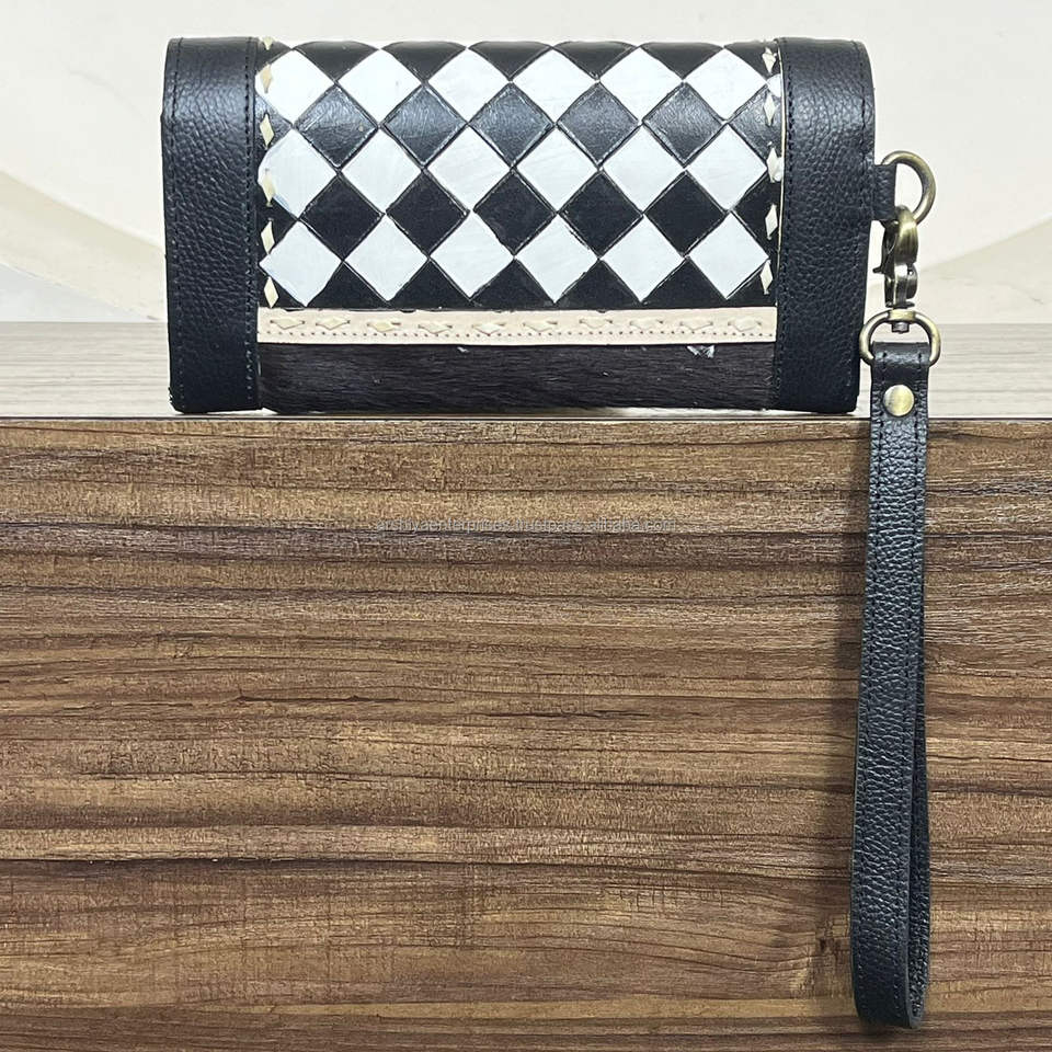 Large Capacity Hand Tooled Leather Wristlet Clutch with Checkered Pattern Multi-Compartment Storage Wallet Stylish Women's Purse