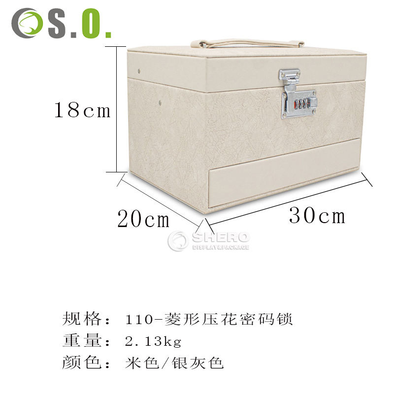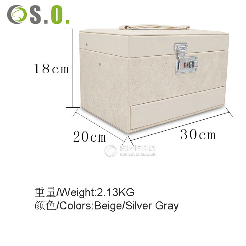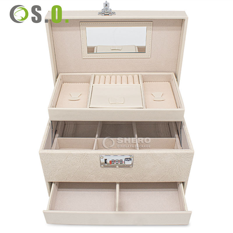Large Capacity Jewelry Box With Combination Lock Clear Window Multi Layer Drawer Design Jewelry Storage Organizer