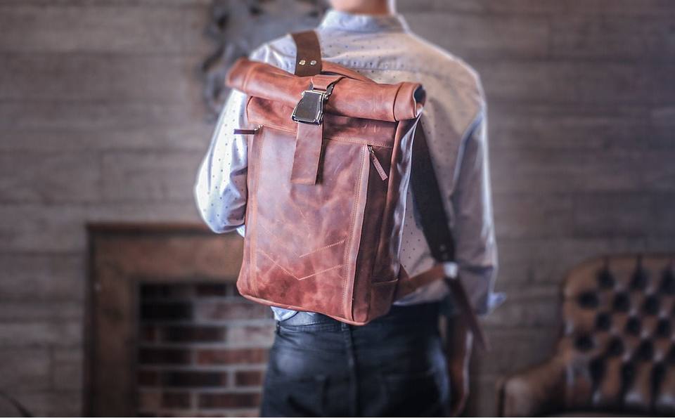 Leather Roll Top Backpack