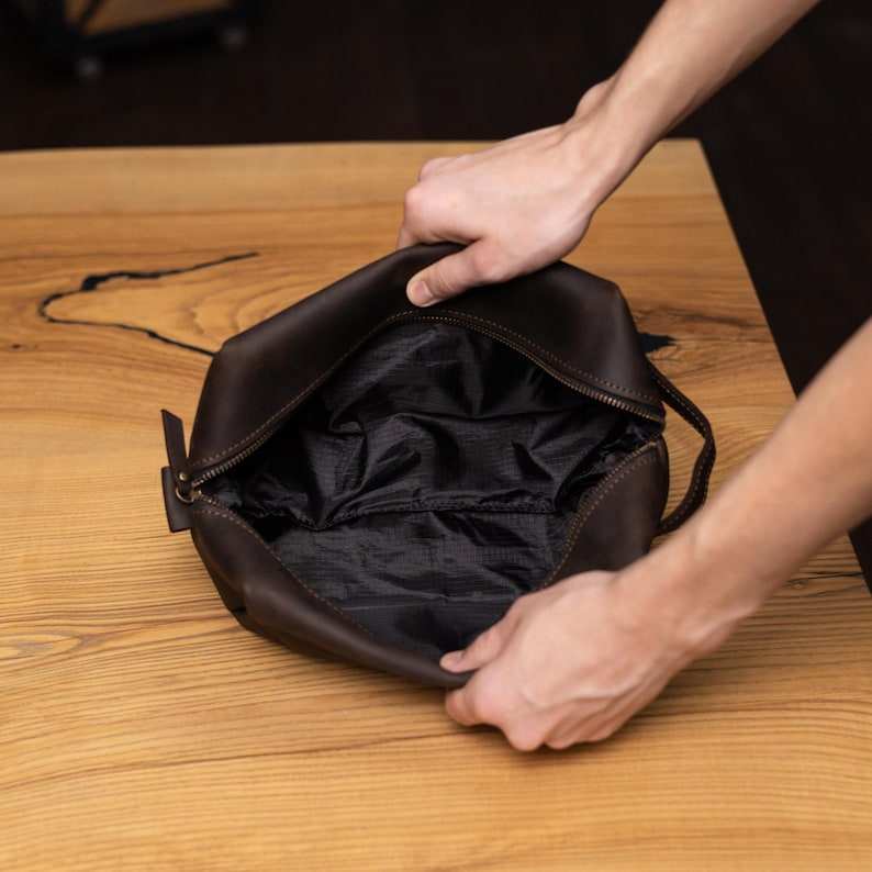 Large Capacity Luxury Men's Vintage for Toiletry Bag Genuine Leather Makeup Pouch Organizer for Travel Cosmetic Storage
