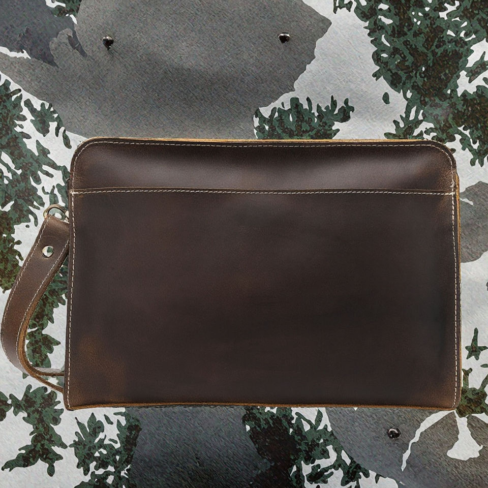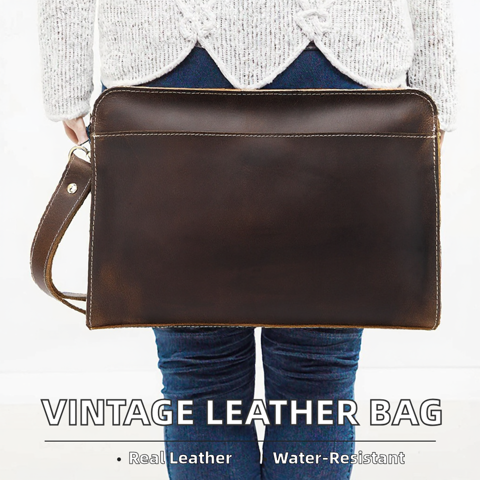 Large Capacity Men's Vintage Crazy Horse Genuine Leather Zipper Envelope Clutch Bag Polyester Lining Fashion Handbag