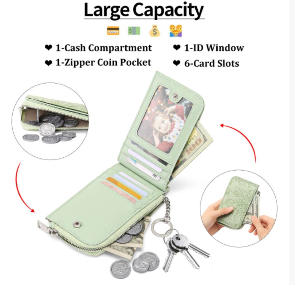 Large Capacity Multi-Card Slot Ladies Wallet with Key Ring New Zipper Card Holder and Embossed Design Coin Purse