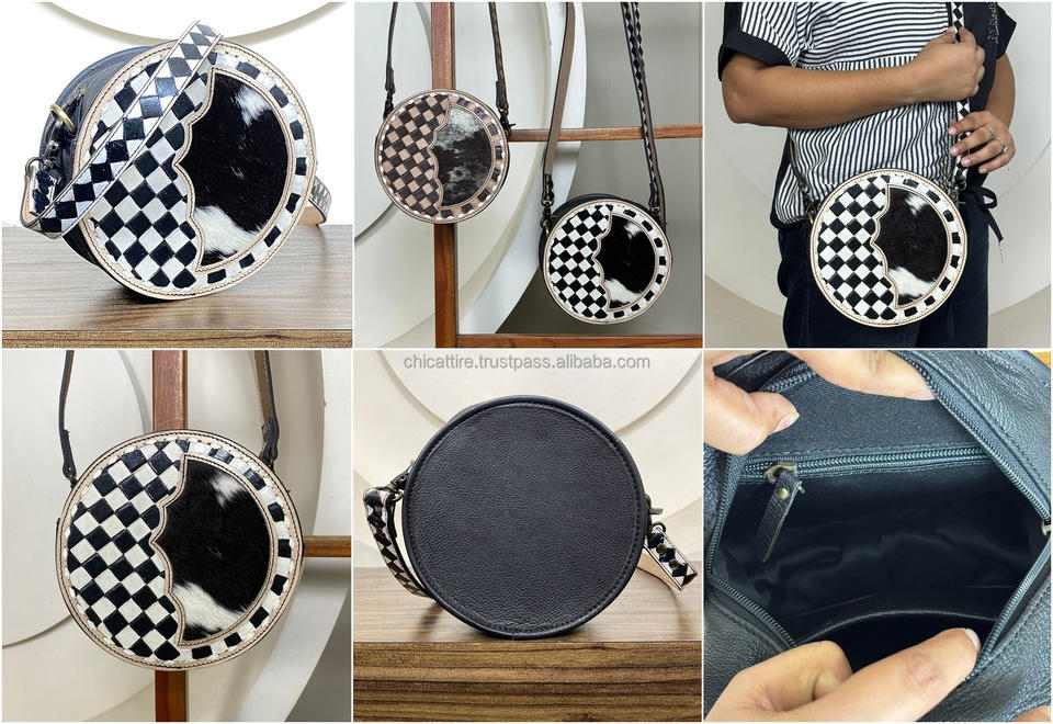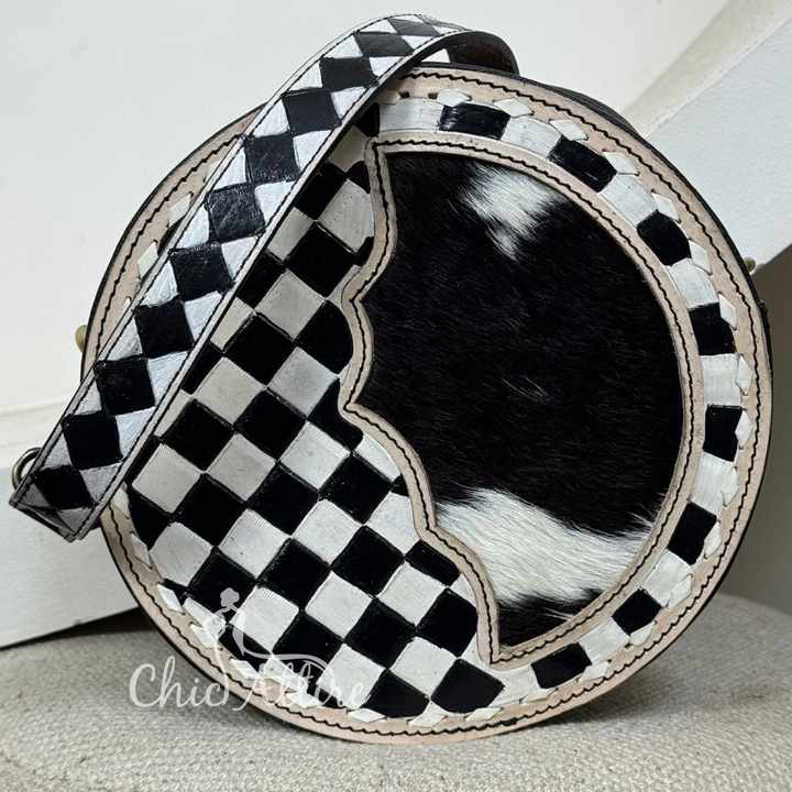 Product name:Western Checkered Hand Tooled Cowhide Leather Shoulder Bag