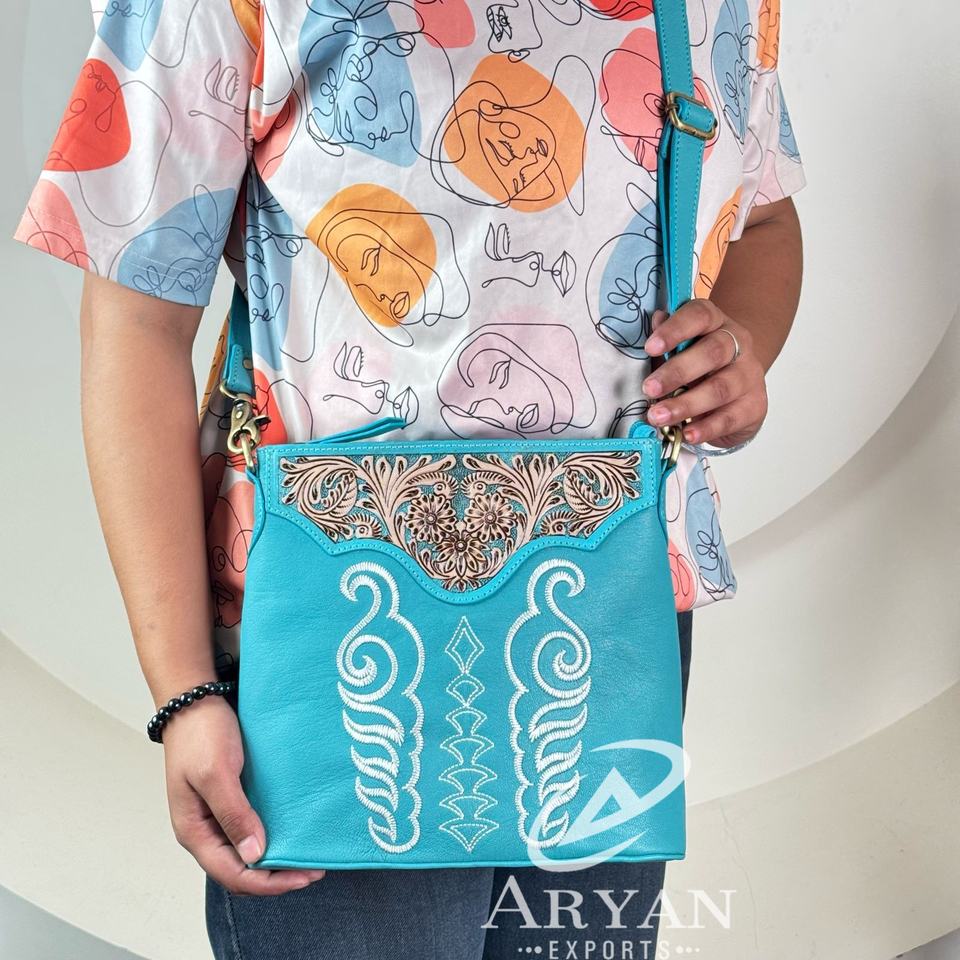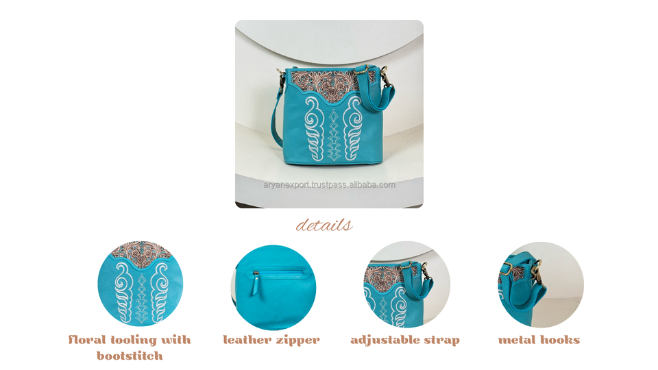 Product Name:Hand Tooled Leather Boot Stitch Crossbody Bag