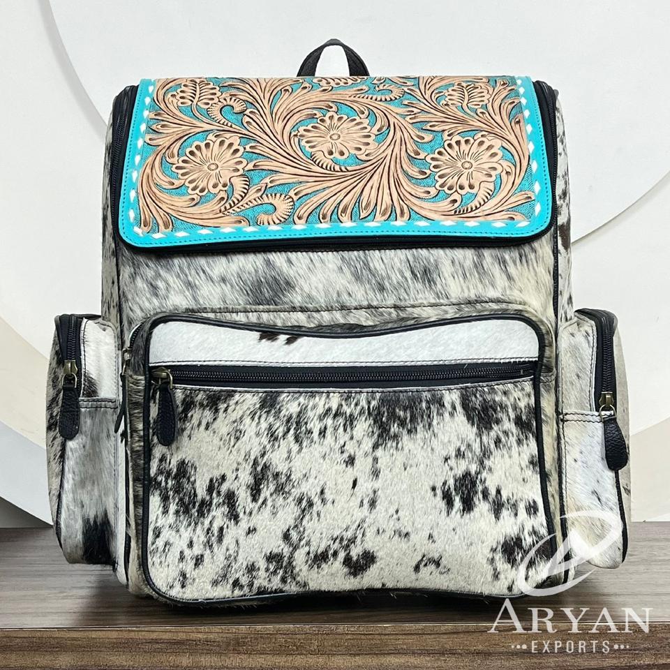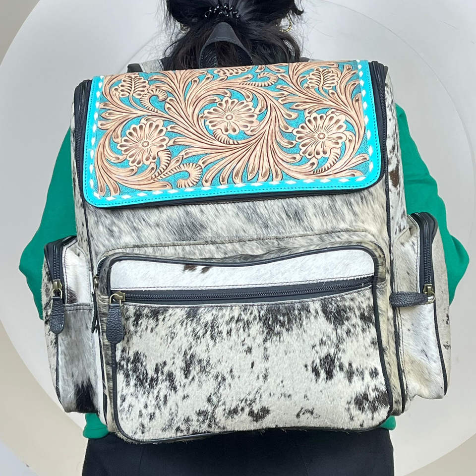 Hand Tooled Cowhide Leather Diaper Bag Backpack