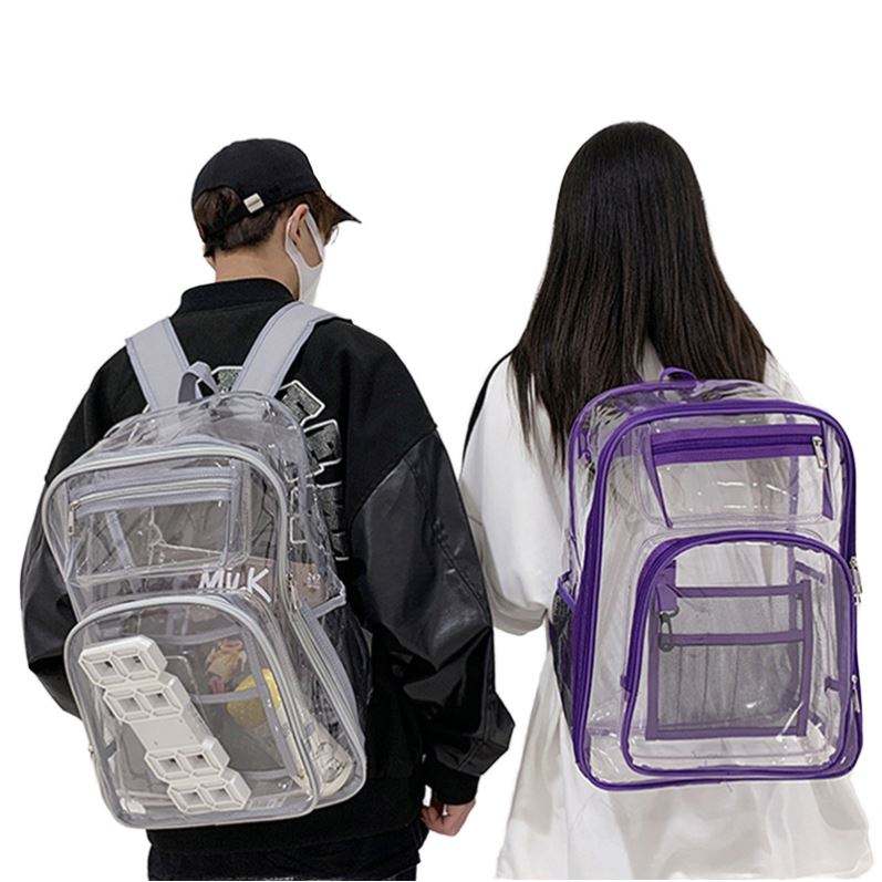 Large Capacity PVC Clear Travel Backpack Customized Waterproof Phone Bag Linen Vintage School Bag for Men Women Promotional