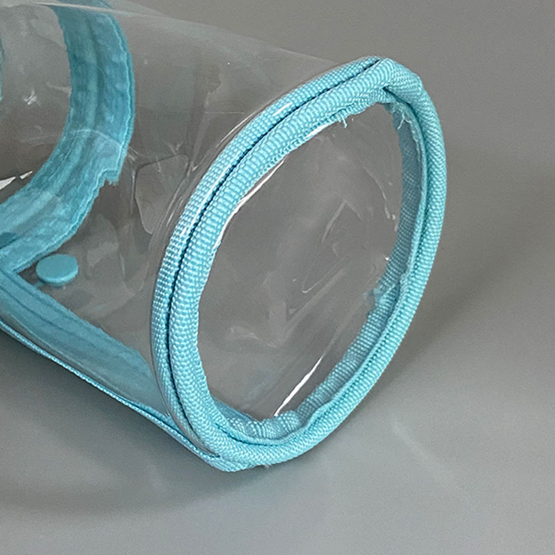 Large Capacity Plastic Cosmetic Bag with Zipper Cute School Student Pencil Box Transparent Design Round Bucket Bag