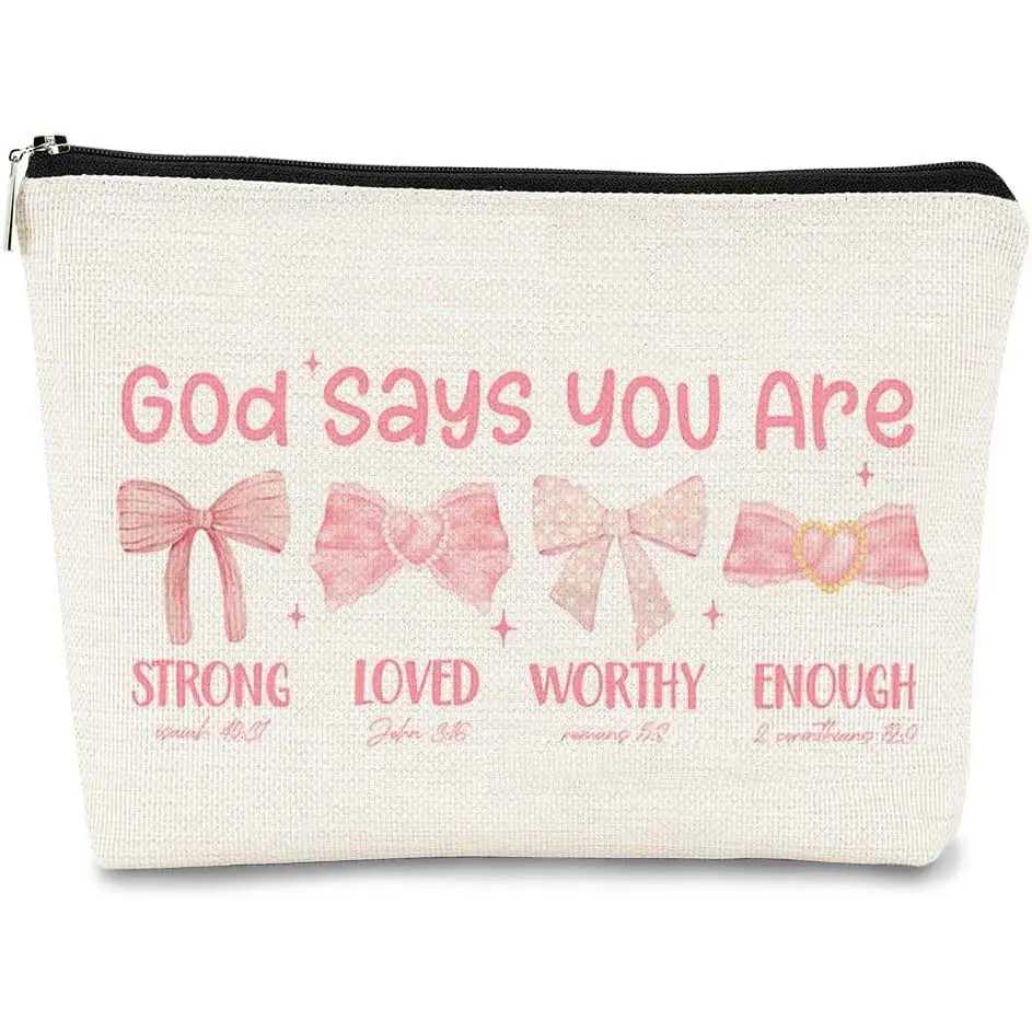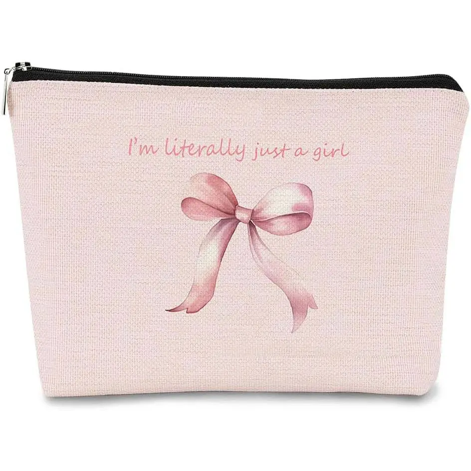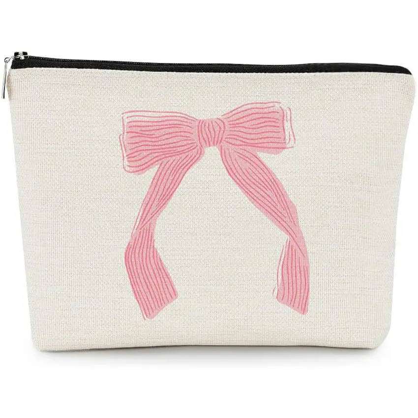 Large Capacity Portable Cosmetic Organizer Pouch for Women Girls Bow Makeup Bag with Zipper Fashionable Travel Storage Accessory