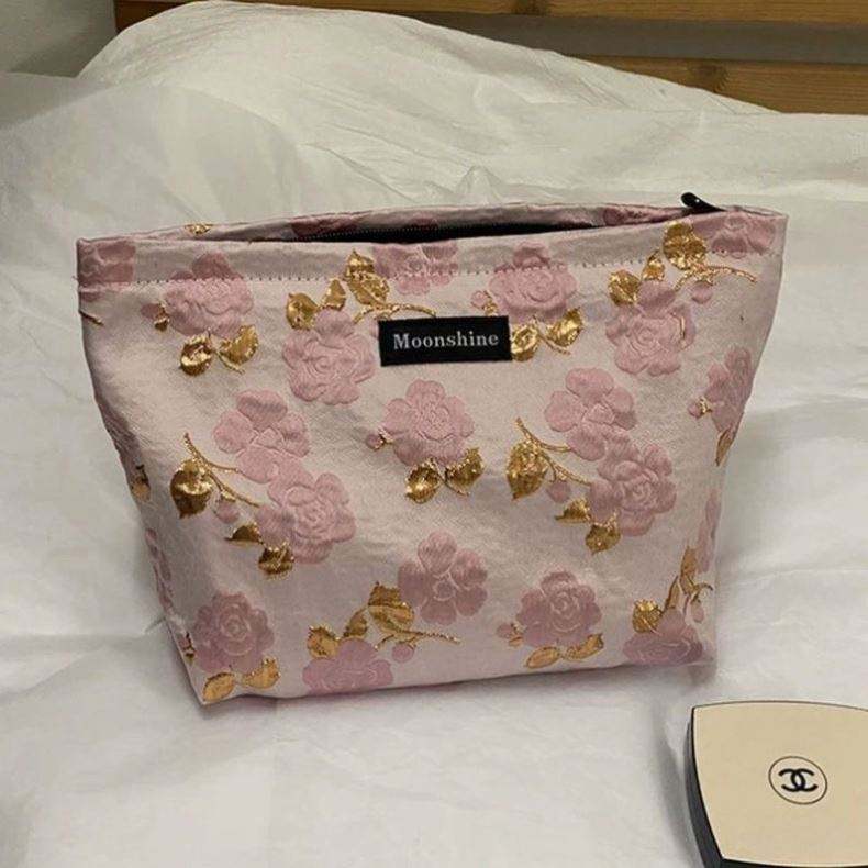 Large Capacity Portable Makeup Bag Quality Jacquard Canvas Toiletry Storage Zipper Instagramable Floral Design Custom Fresh