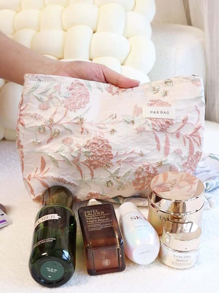 Large Capacity Portable Makeup New Fresh Canvas Case With Zipper Closure Handheld Travel Skincare Storage Bag