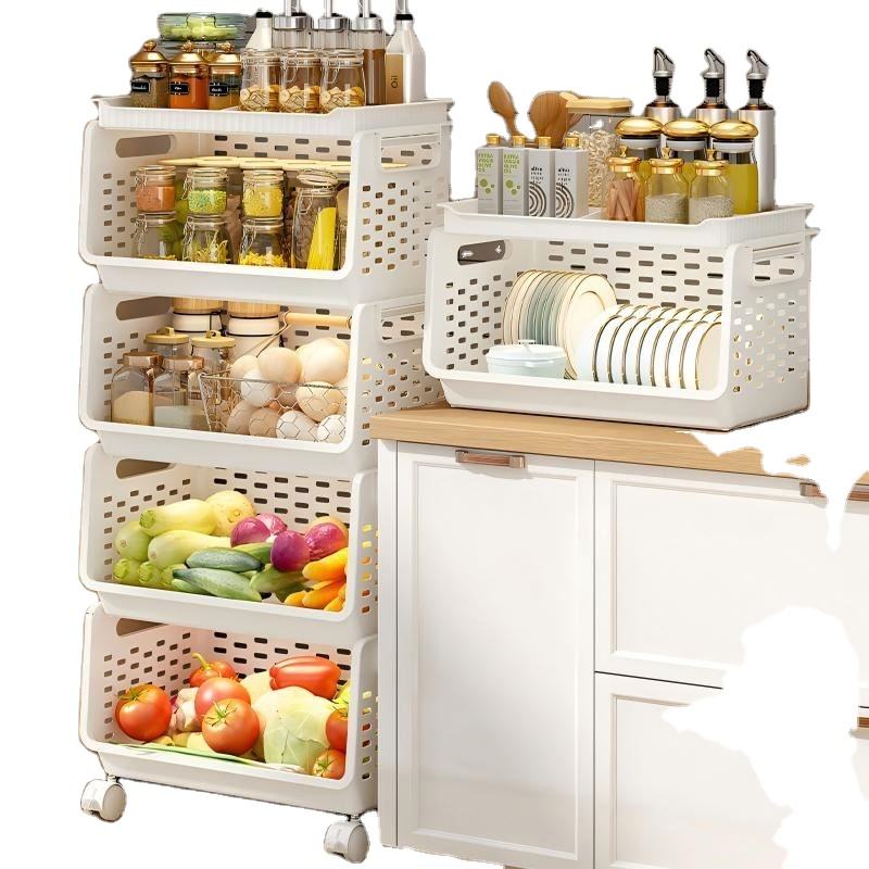 Large Capacity Rectangle Plastic Movable Small Cart Multi-Layer Kitchen Storage Rack for Fruits Vegetables Household for Food