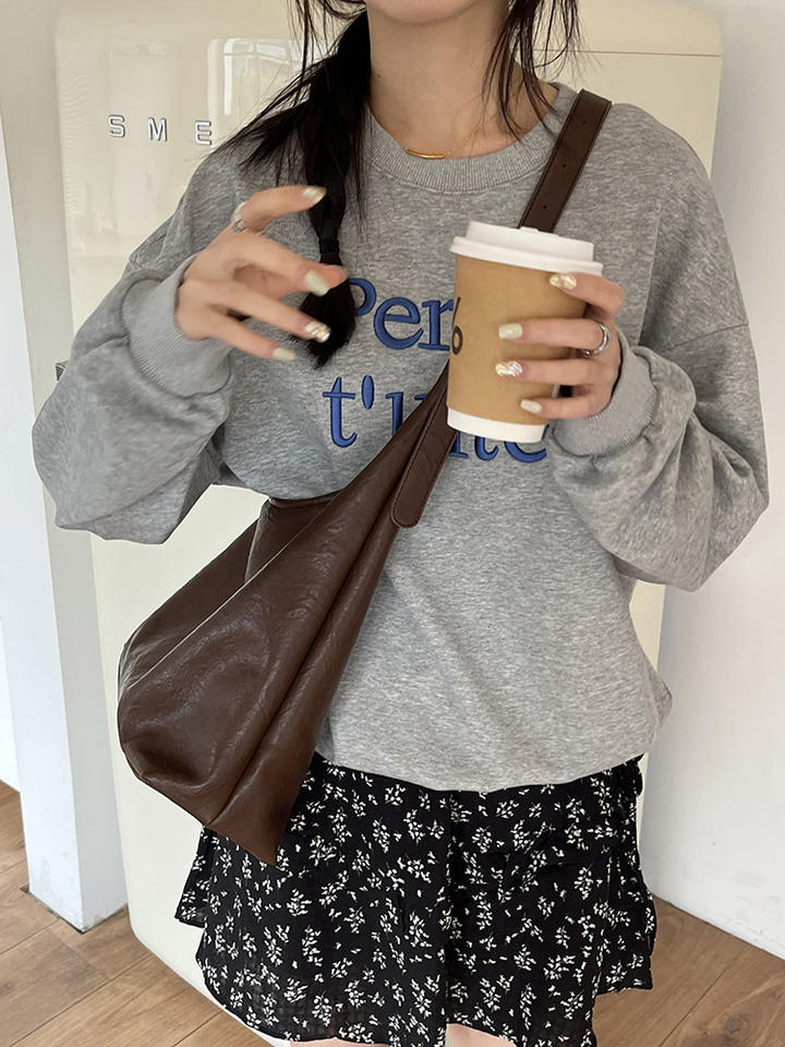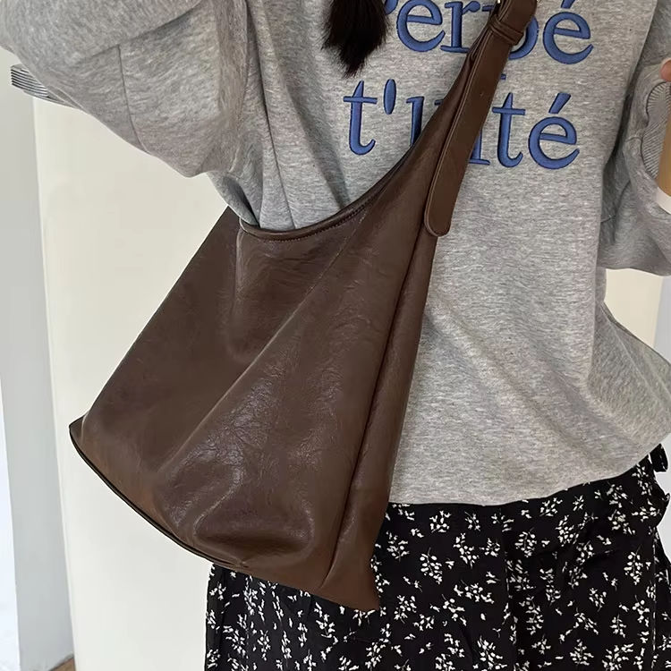 Large Capacity Retro Commute Crossbody Bag Women Korean Style Soft PU Leather Shoulder Bag Zipper Waterproof Fashionable