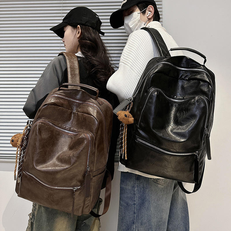 Large Capacity Retro PU Leather Laptop Backpack Cross-Border Korean Style Business Casual Travel Bag for Students and Men