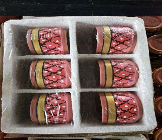 Large Capacity Reusable Portable Square Vintage Pottery Mug Hand Decorated Coffee Tea New Traditional Design by Indian Exporter