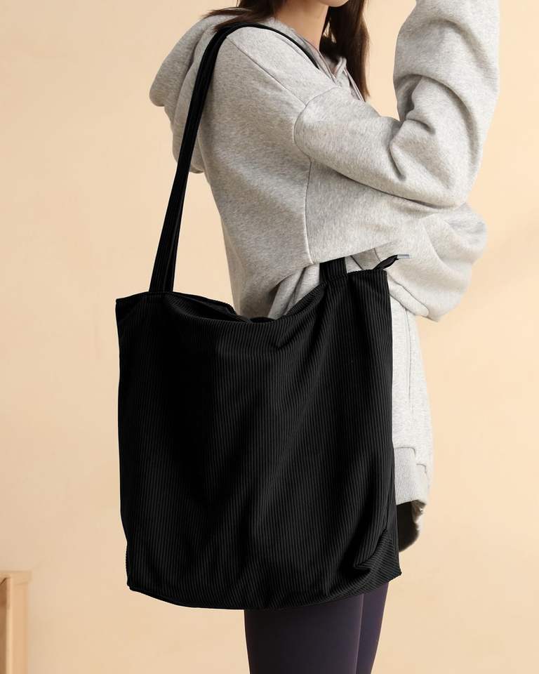 Large Capacity Reusable Corduroy Woven Shopping Tote Bag for Ladies Custom Logo Eco-Friendly Durable Canvas Material